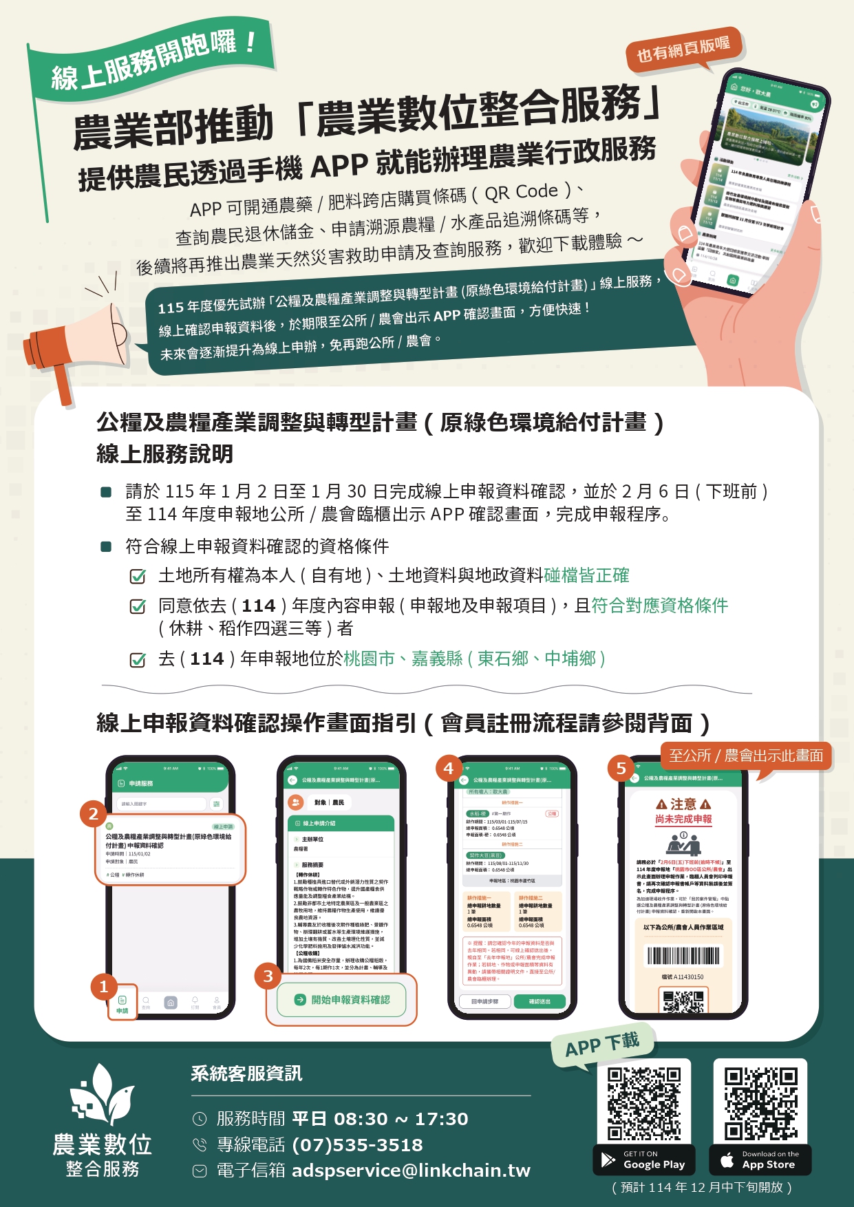 邀請轄內農友踴躍出席,並請攜帶身分證及健保卡(農業數位整合服務進階會員註冊用)